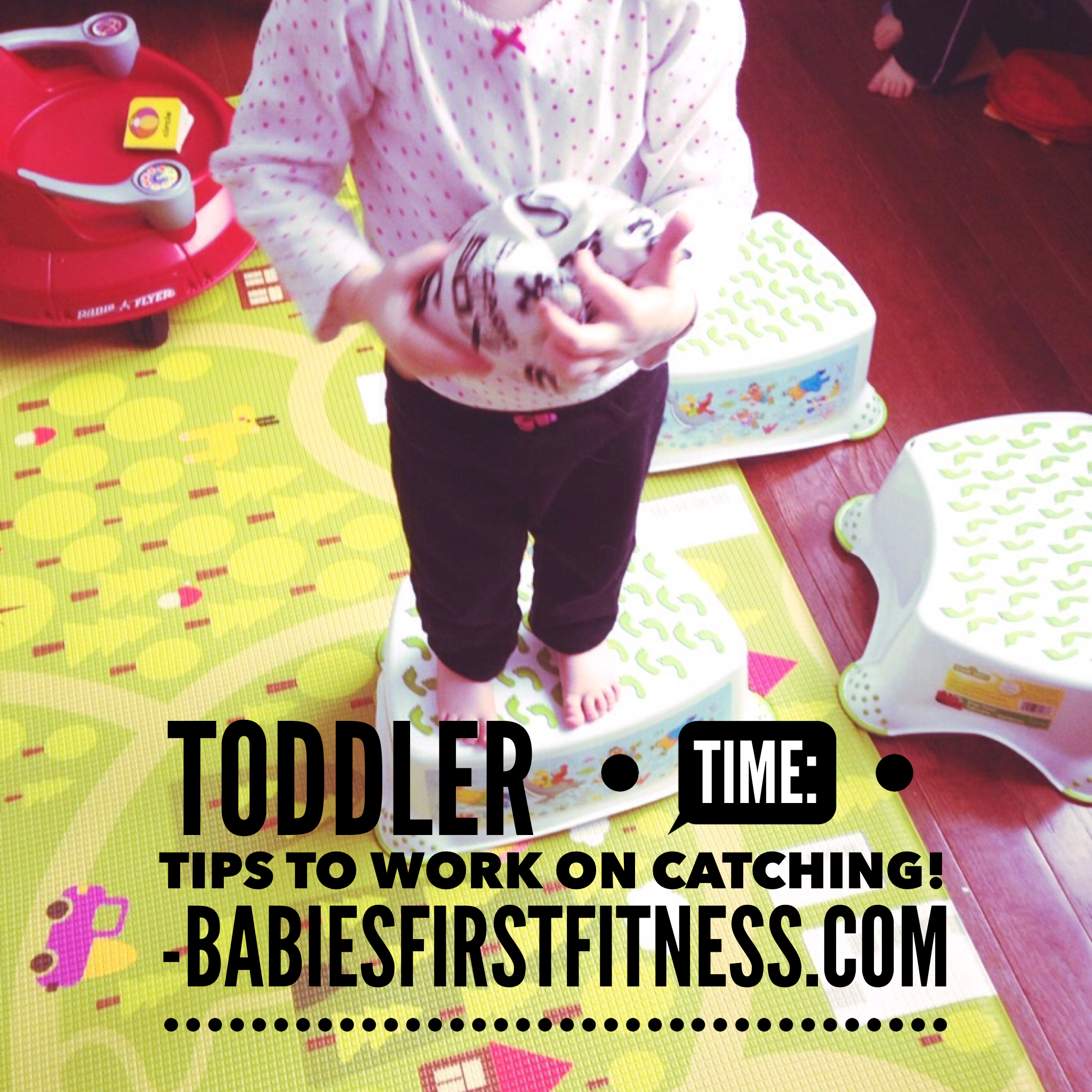 • For many children, you can start working on catching and throwing around 20-24 months. If your child is not ready at that age, feel free to work on it when they have the ability to stand on the stool and attend to you while you are a few feet away.